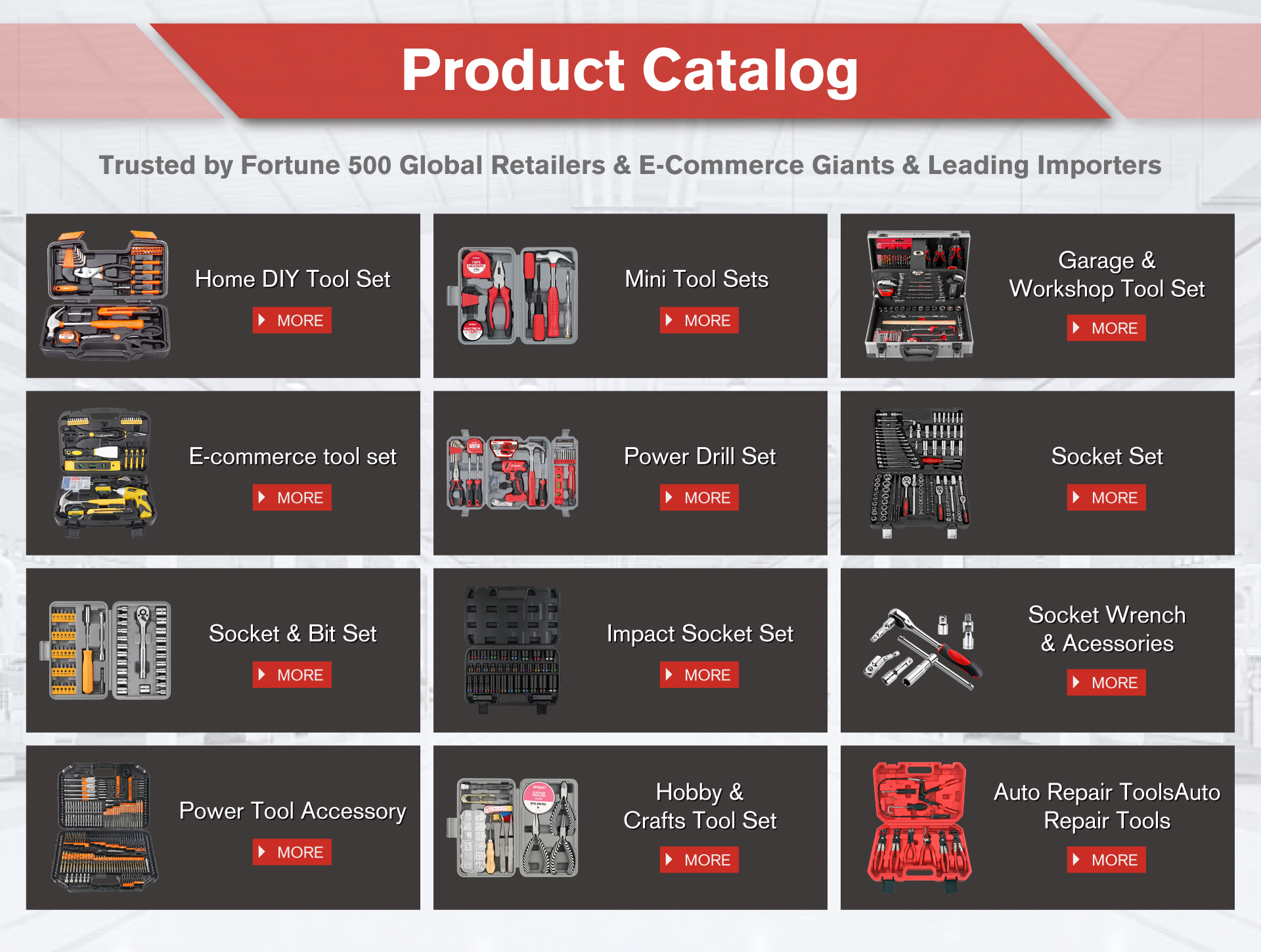 Produk utama: Set alat rumah, Set peralatan listrik, Set bor tanpa kabel, Set soket, Set alat Mechanica