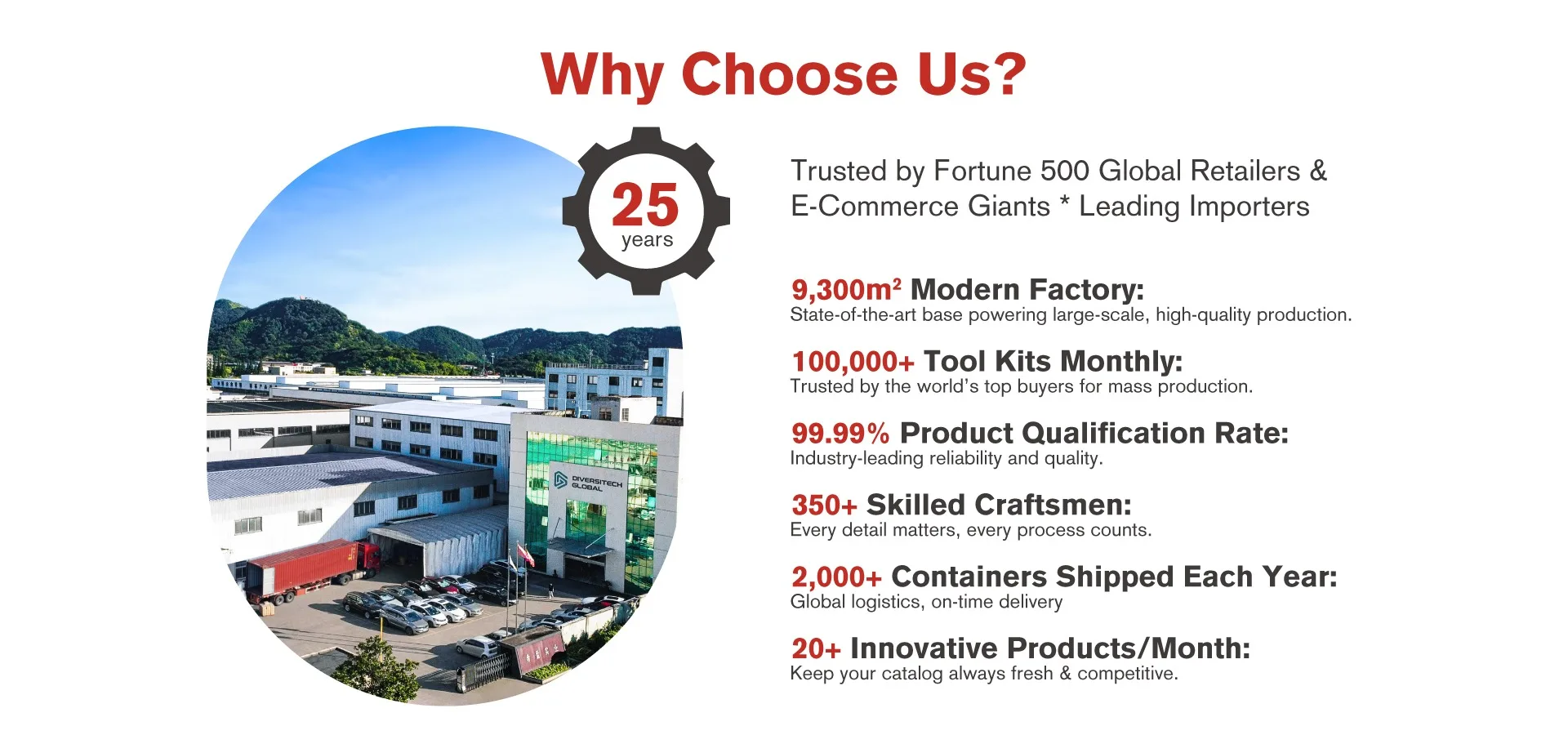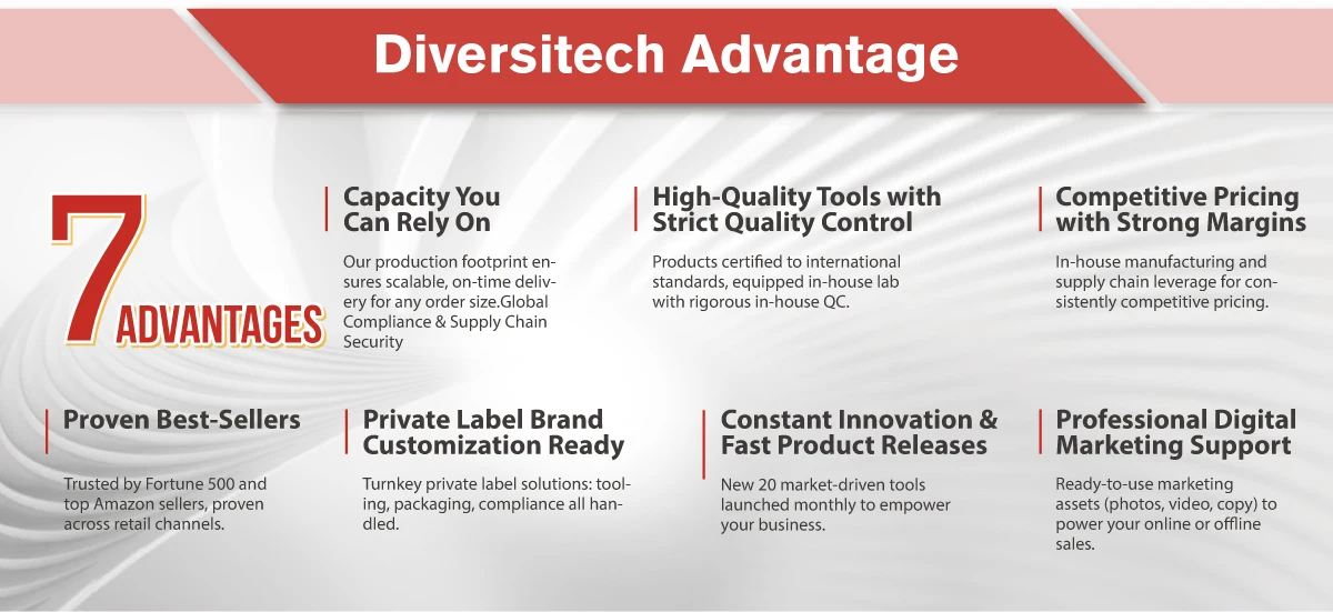 As your direct-from-factory partner, Diversitech Manufacturing Corp. launches 30 new products every month. We are certified to both ISO 9001 and ISO 14001 standards and have established a fully integrated supply chain encompassing R&D, an in-house laboratory, manufacturing, and global logistics.